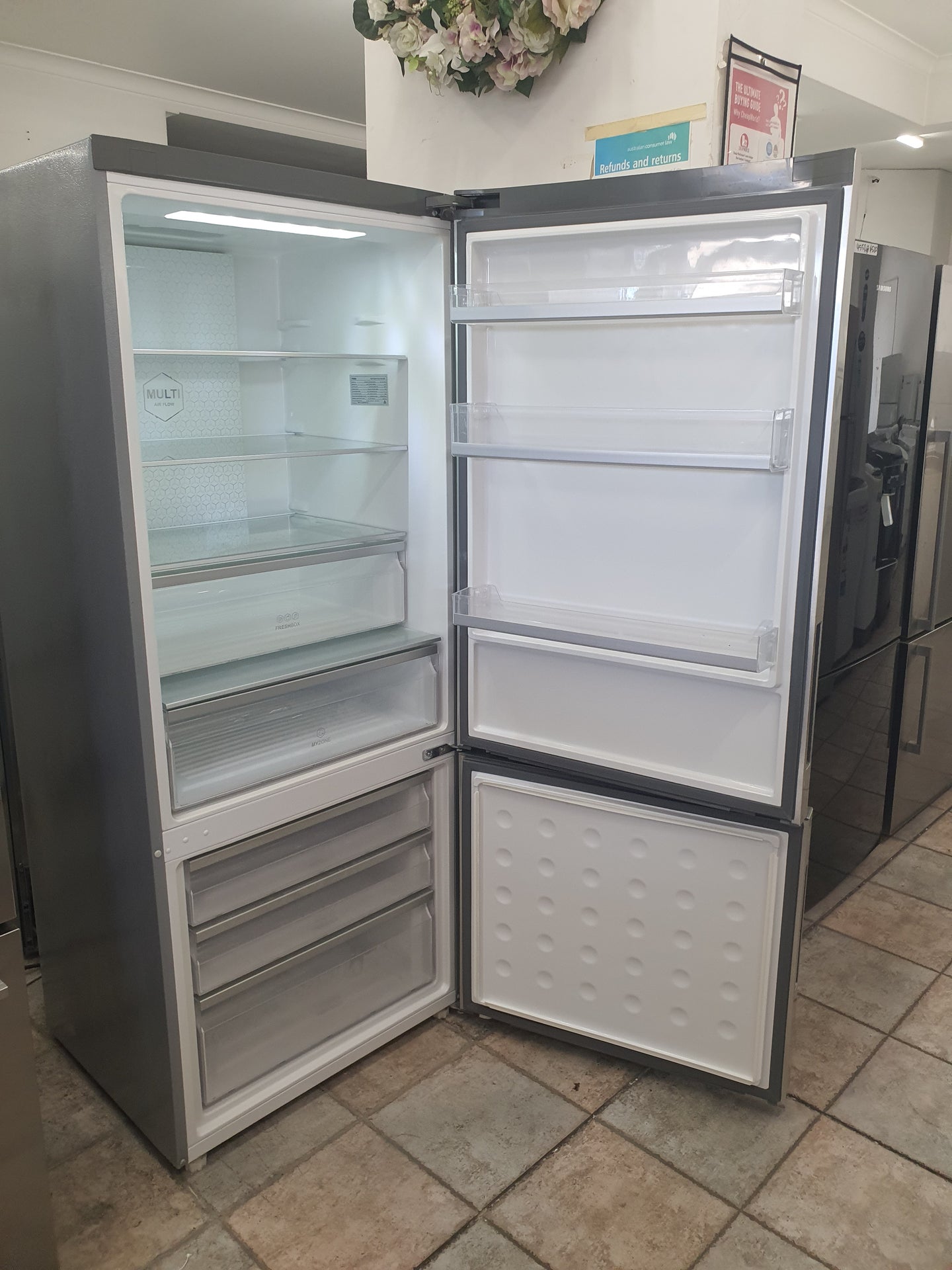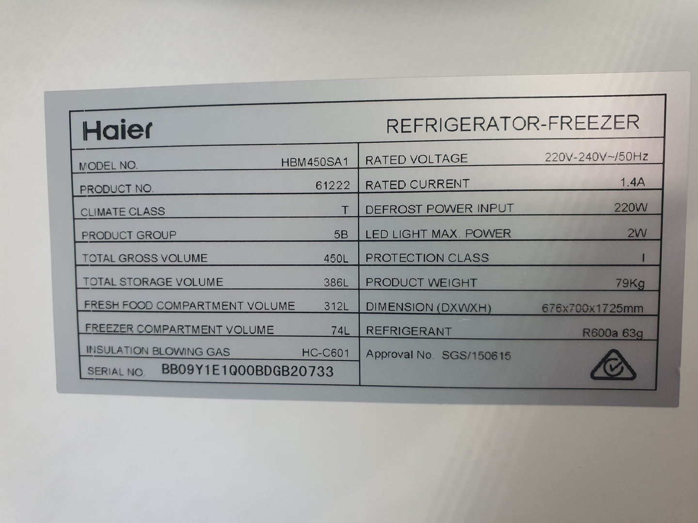 Refurbished haier 450L Refrigerator in excellent working condition and comes with a Warranty and can be delivered next day 6 Days A week in the Sydney city area. It has some minor dents, scratches.