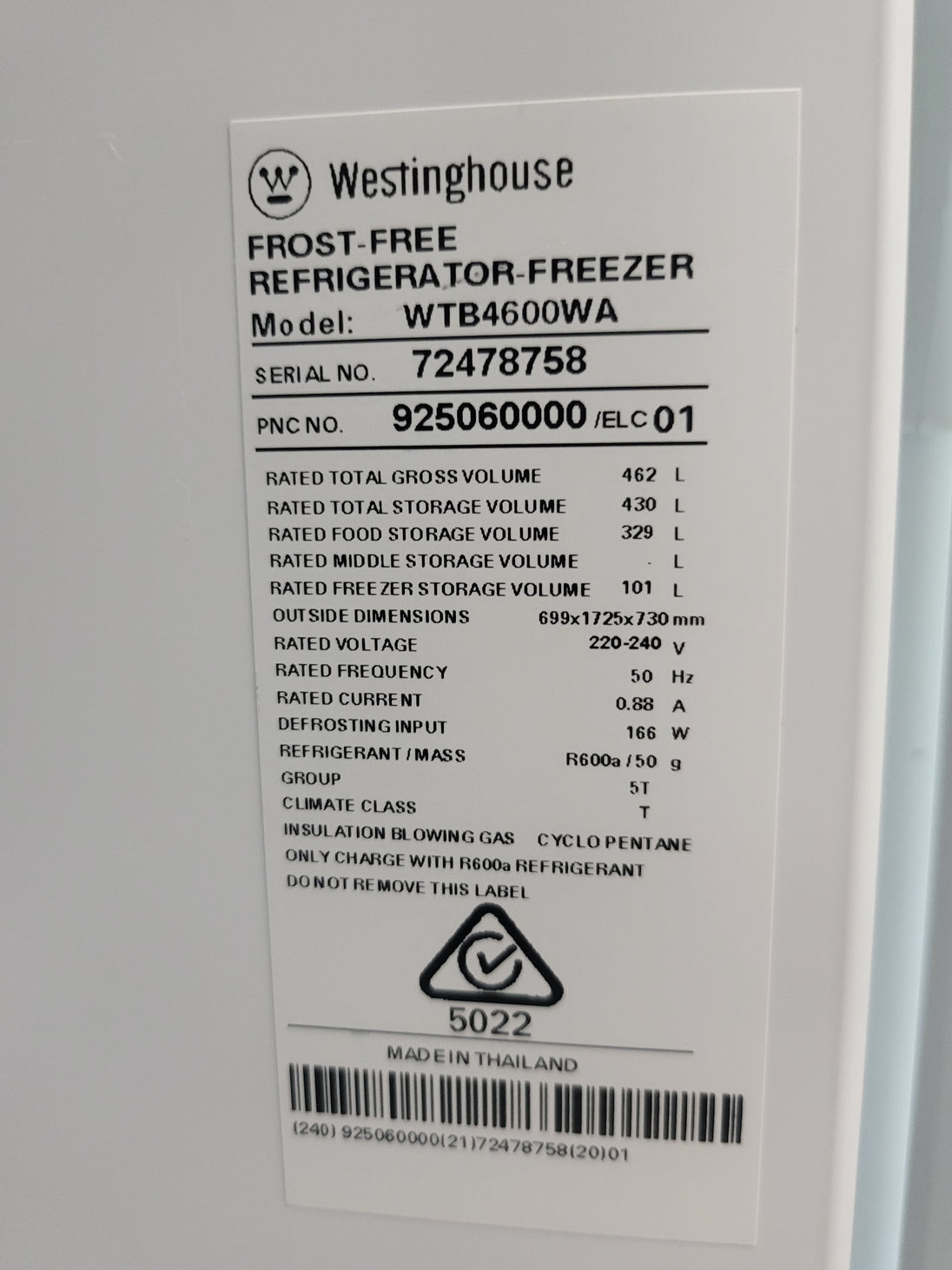 Refurbished Westinghouse 462L refrigerator in excellent working condition and comes with a Warranty and can be delivered next day 6 Days A week in the Sydney city area. It has some minor dents and scratches.