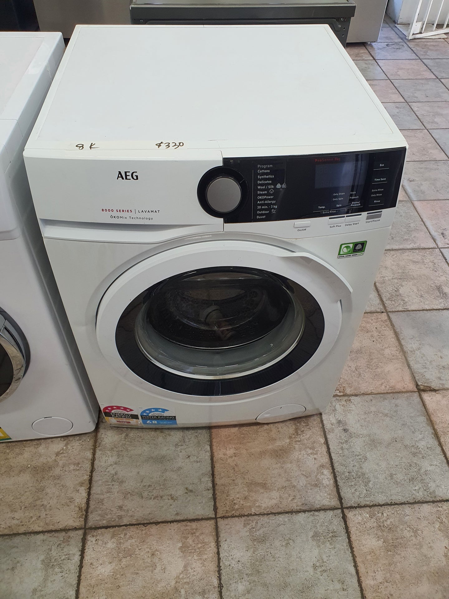 Refurbished AEG 8kg front loader washing machine in working condition and comes with a Warranty and can be delivered next day 6 Days A week in the Sydney city area. It has some minor dents and scratches.