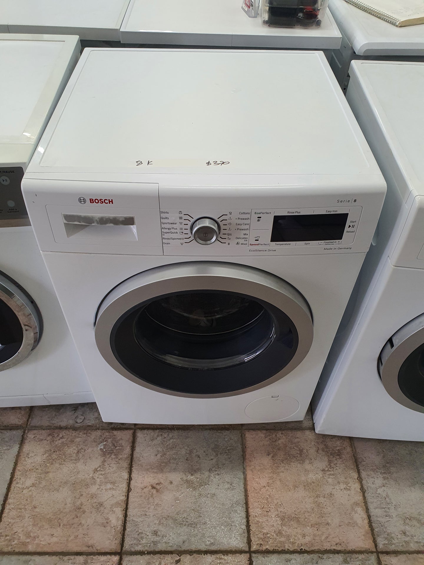 Refurbished Bosch 8 kg front loader washing machine in excellent working condition and comes with a Warranty and can be delivered next day 6 Days A week in the Sydney city area. It has some minor dents and scratches.