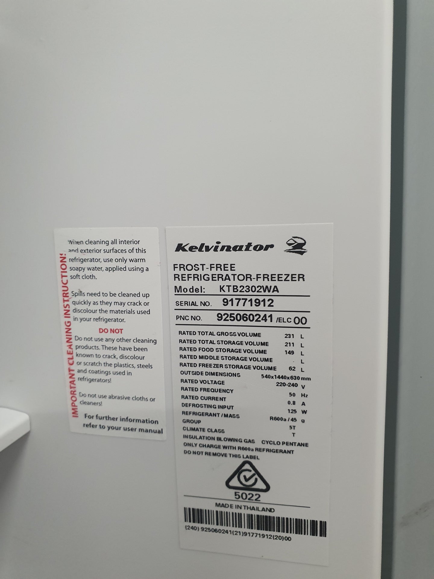 Refurbished Kelvinator 231L Refrigerator in excellent working condition and comes with a Warranty and can be delivered next day 6 Days A week in the Sydney city area. It has some minor dents, scratches.