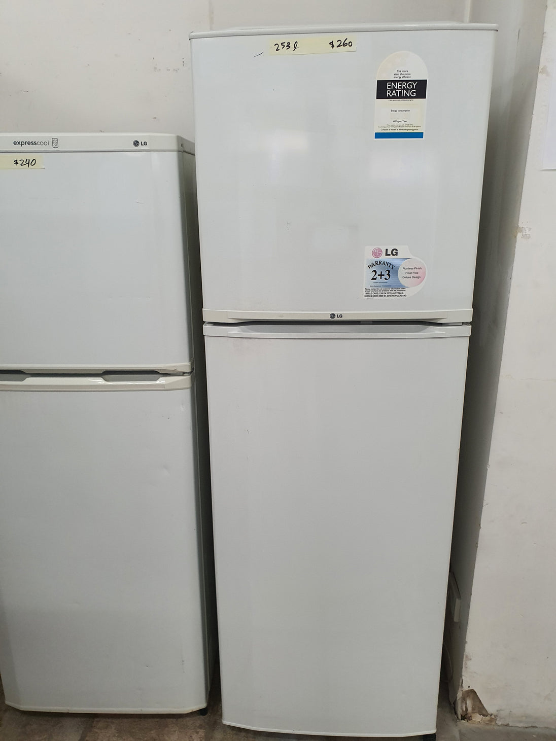 Refurbished Lg 253LRefrigerator in excellent working condition and comes with a Warranty and can be delivered next day 6 Days A week in the Sydney city area. It has some minor dents, scratches.