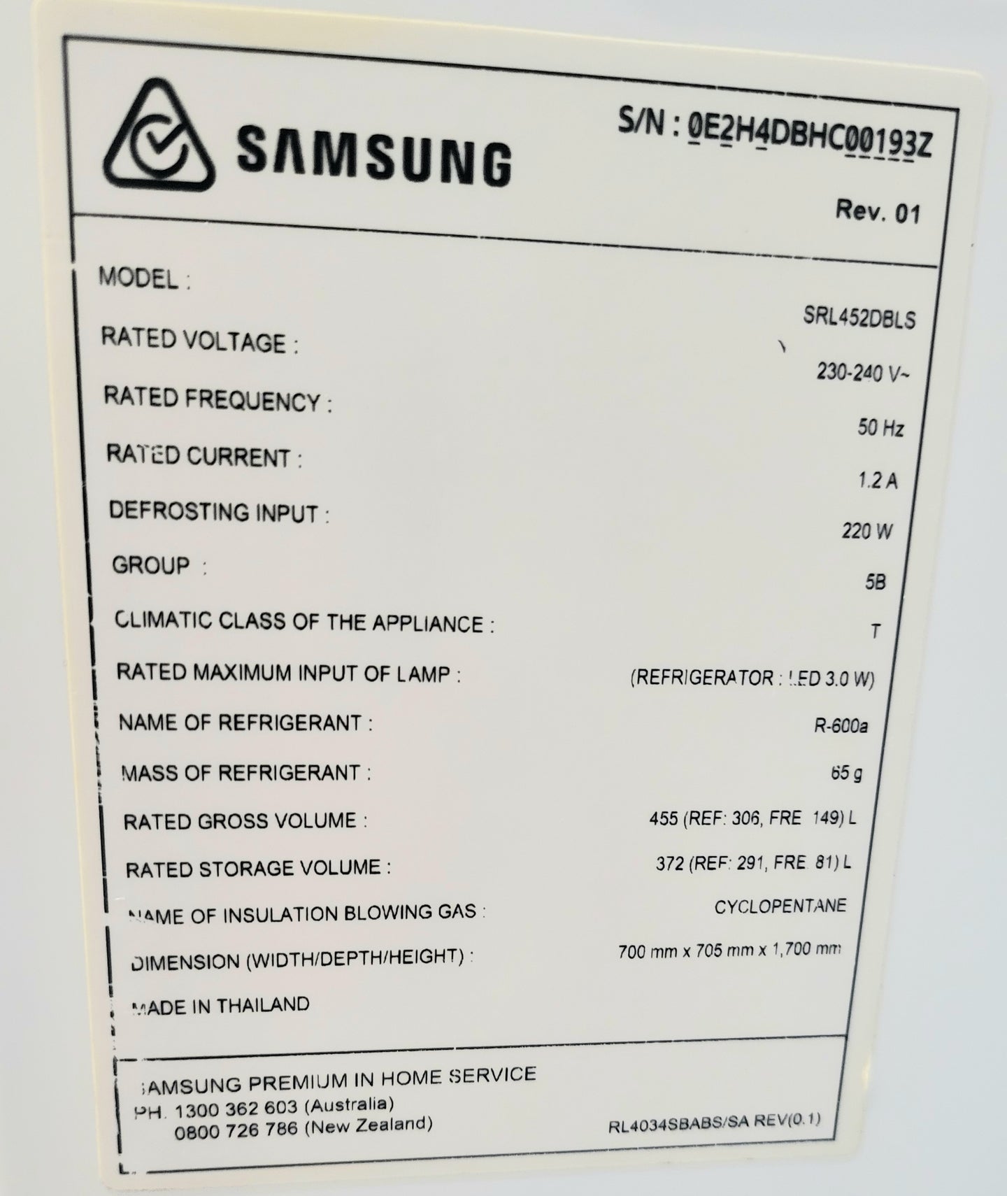 Refurbished Samsung 455L Refrigerator in excellent working condition and comes with a Warranty and can be delivered next day 6 Days A week in the Sydney city area. It has some minor dents, scratches.