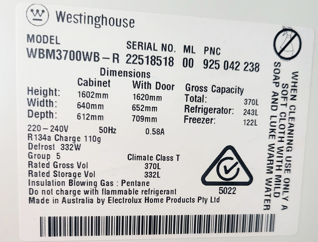 Refurbished Westinghouse 370L Refrigerator in excellent working condition and comes with a Warranty and can be delivered next day 6 Days A week in the Sydney city area. It has some minor dents and scratches.