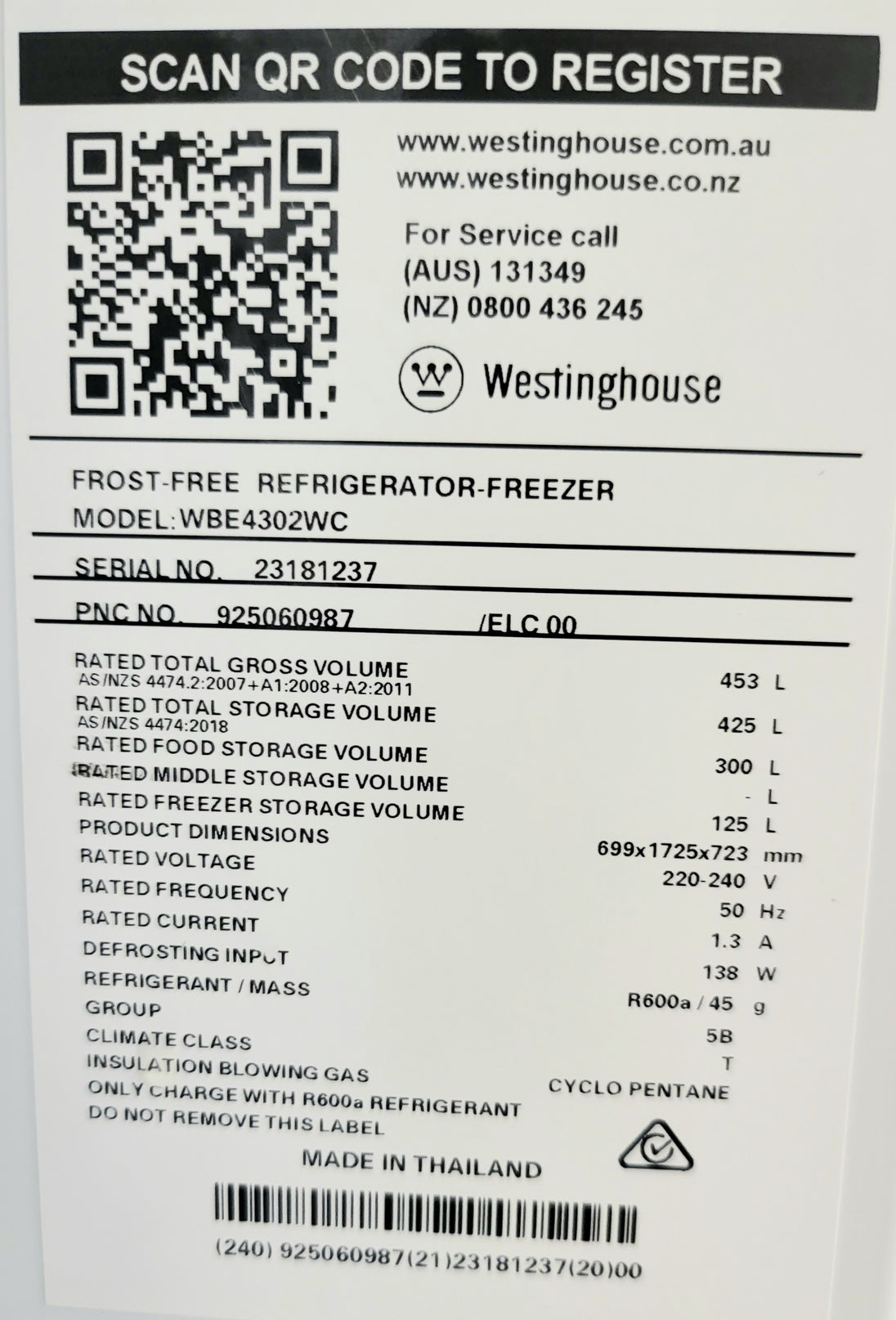 Refurbished Westinghouse 453L Refrigerator in excellent working condition and comes with a Warranty and can be delivered next day 6 Days A week in the Sydney city area. It has some minor dents, scratches.