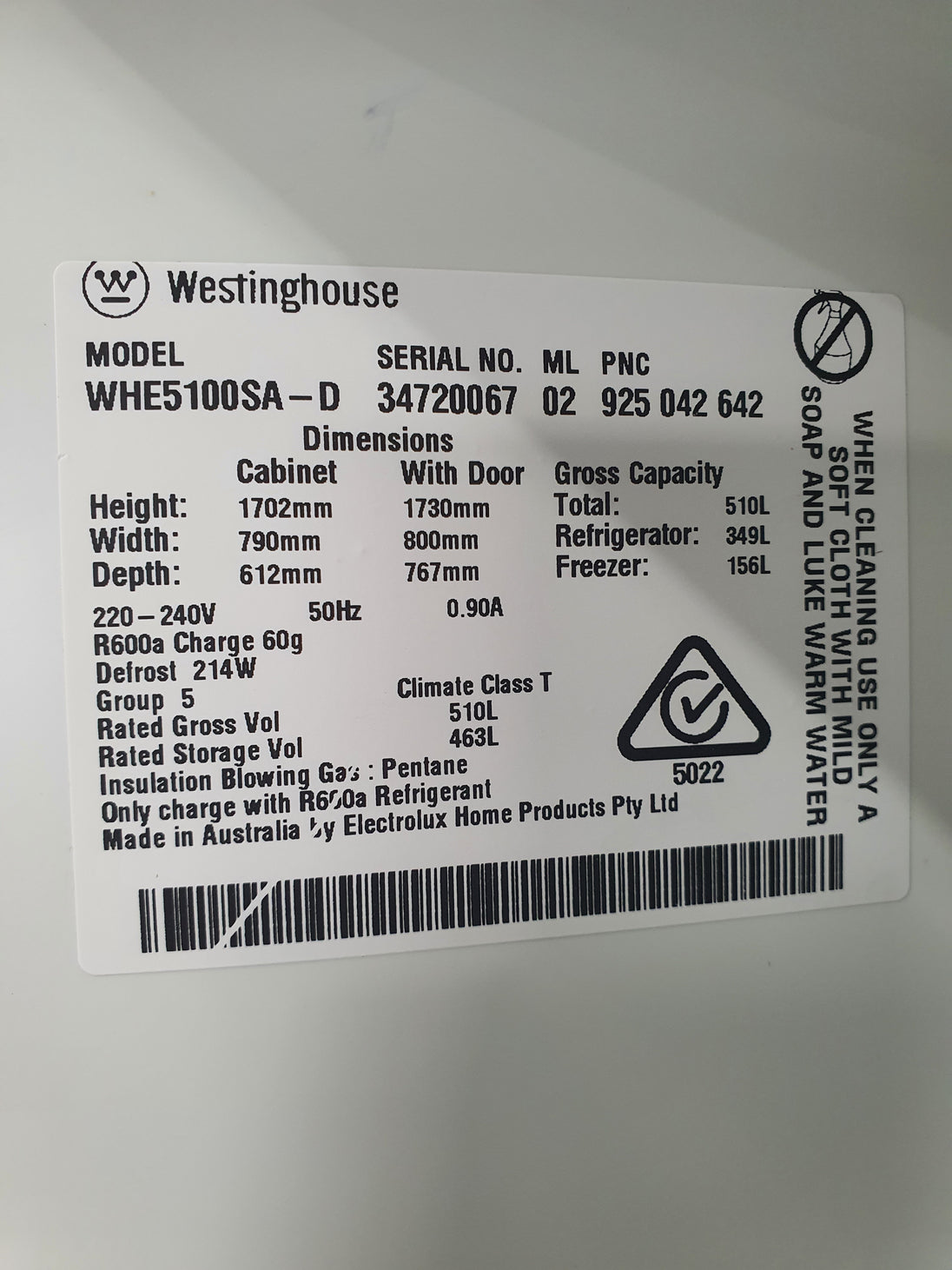 Refurbished Westinghouse 5q0L french door Refrigerator in excellent working condition and comes with a Warranty and can be delivered next day 6 Days A week in the Sydney city area. It has some minor dents and scratches.